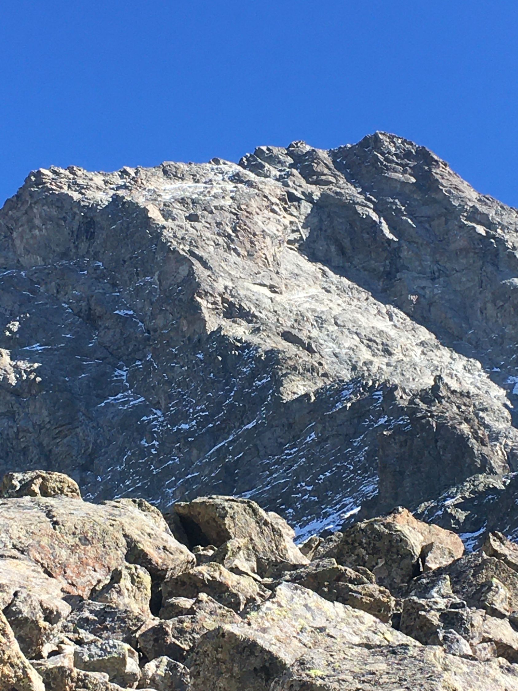 Langer Westgrat des Piz Julier, der von der Gianda Grischa 2800 m bis auf den Gipfel verläuft.