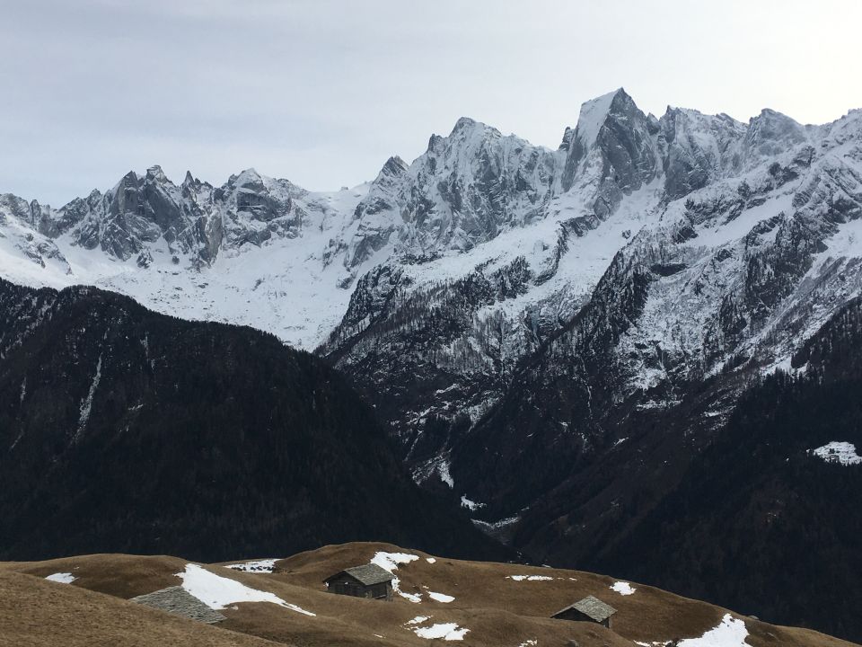 Maiensäss auf grosser Terrasse über Soglio mit toller Aussicht zum Pizzo Badile.
