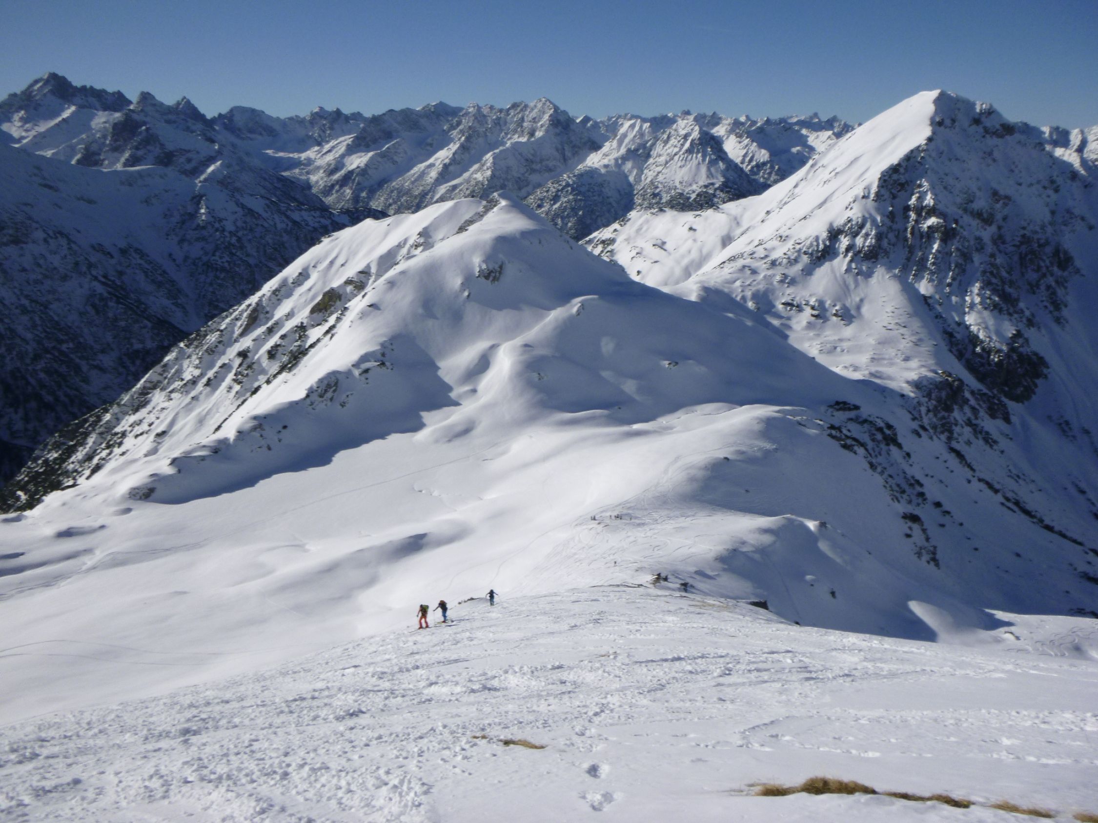 Hohe Brugg‘n – P 1212 – Fallerschein-Almen - Spitzeggwald – Sommerberg-Hütte – d’Wanne - Sommerberg-Joch – SW-Rücken – Namloser Wetterspitze – retourWT 41380m13.02.2023