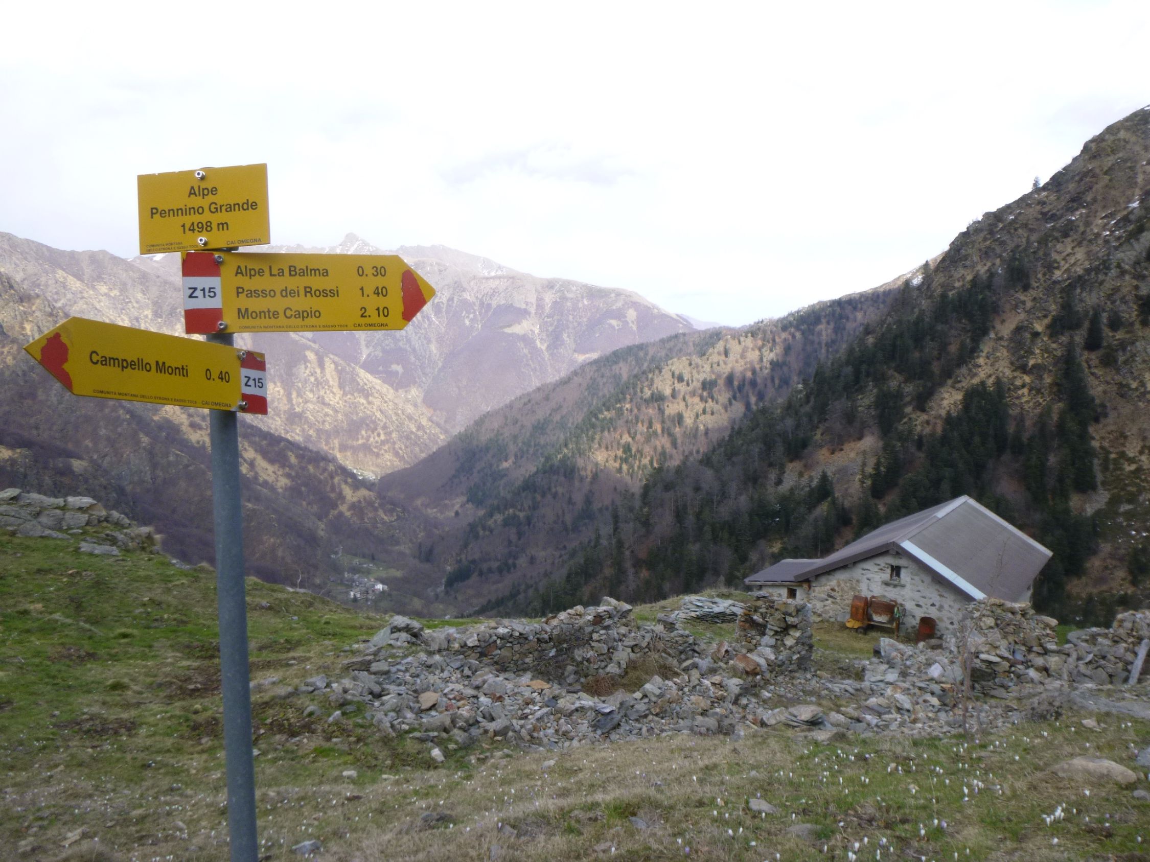 Campello Monti – Sasso Mur – A. del Vecchio – A. Scarpia – Bocc. di Rimella – A. Pianello – A. Sinanecca – Bonda Piatta – SW-Rücken – Mte. Capio – Passo dei Rossi – La Balma – A. Pennino Grande – Campello MontiT 41000m13.04.2023