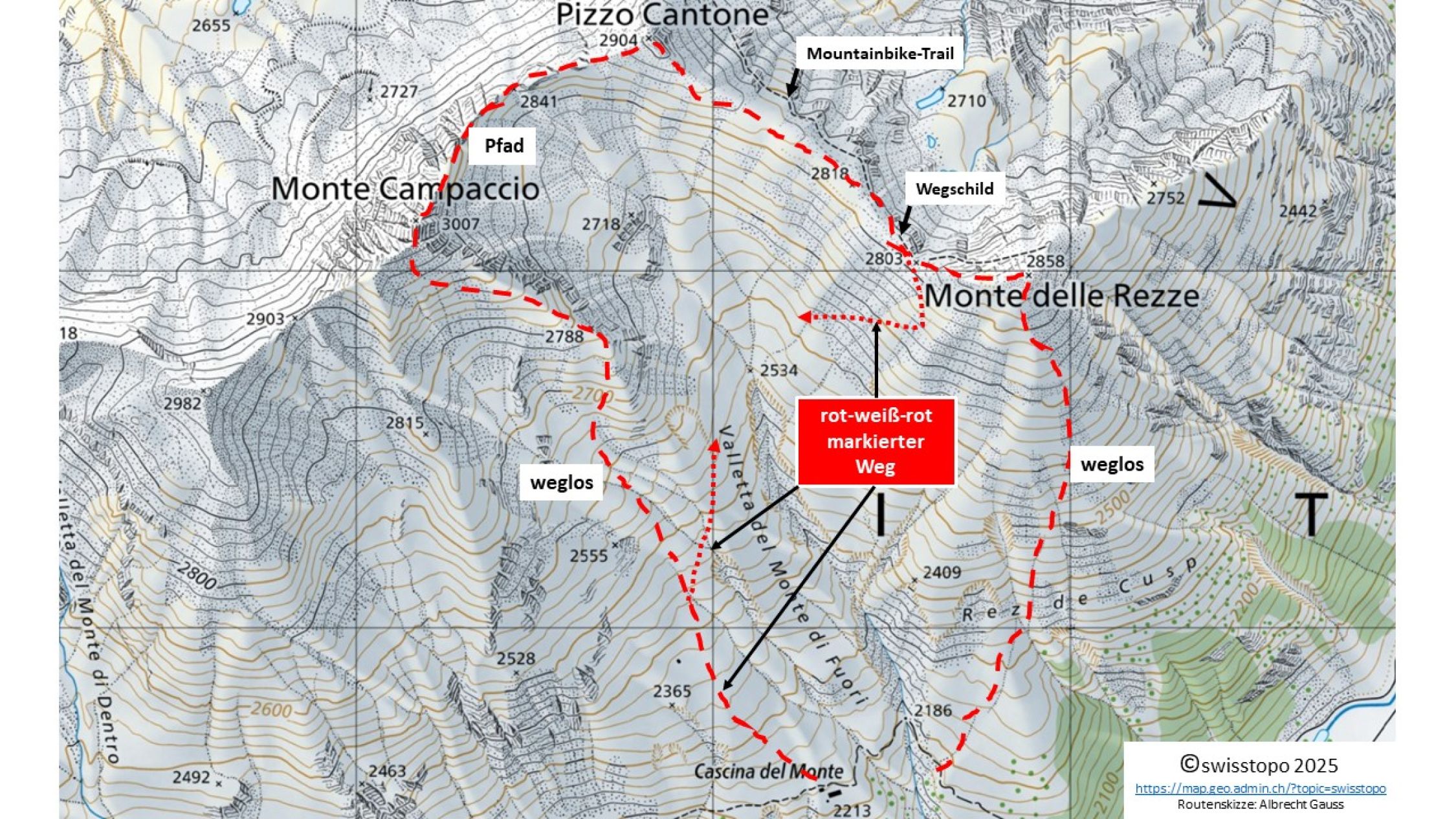 Von der Alpe Campaccio über die S-Flanke zum Monte delle Rezze und den SO-Grat des Pizzo Cantone zum Monte Campaccio (Überschreitung NO-Grat → SO-Grat)T 31180m13.12.2025