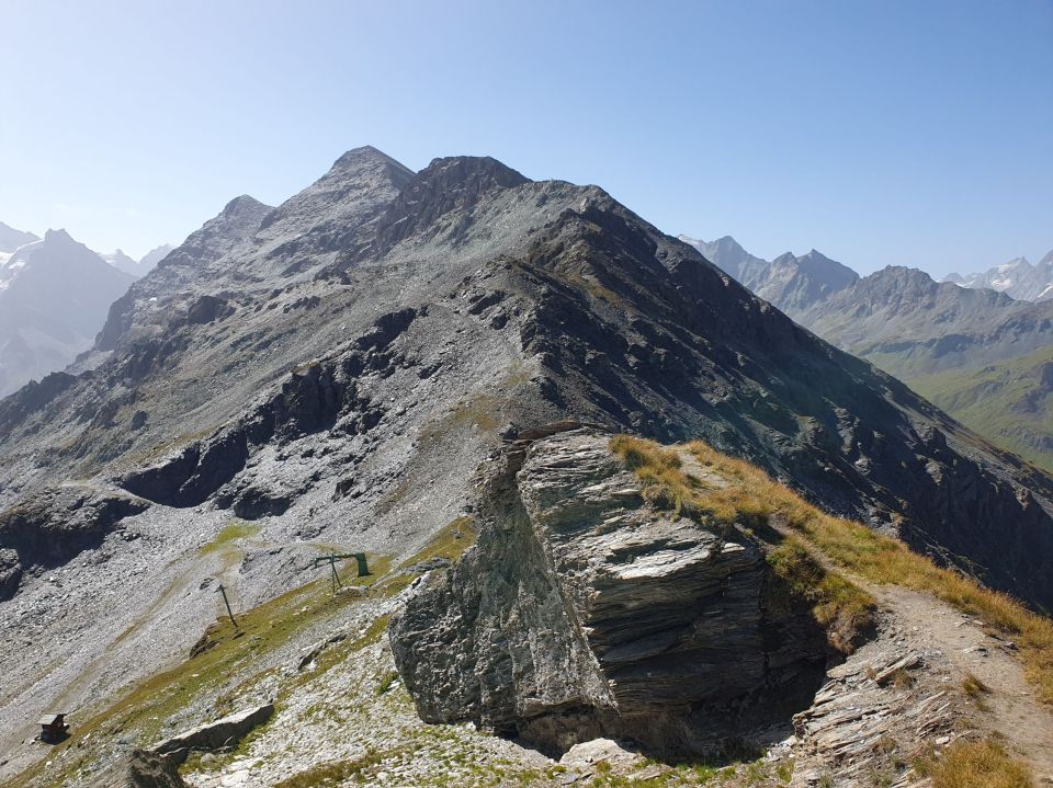 Dieser mächtige, von weiten Schutthalden und bröselnden Felsflanken geprägte Berg bietet einen hervorragenden Panoramablick.