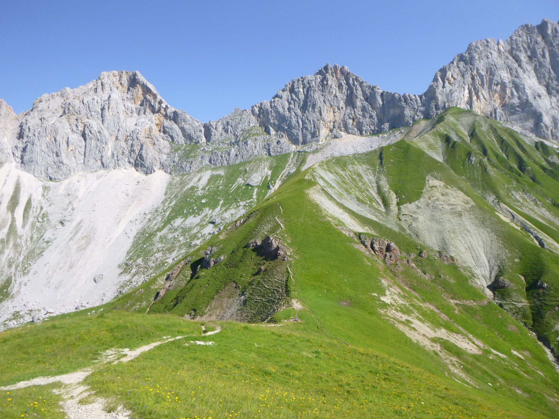 Überschreitung (Sportplatz – Kirchplatzl – Kniepass - Waldsteig – Wettersteinhütte – Wangalm – Scharnitztal – Scharnitzjoch – Erinnerungshütte – Westgrat – Gehren-Spitze – SO-Schulter – Habers Mahd – Nazenlehn – Beim Hahn – Gasse – Sportplatz)T 51255m25.07.2024