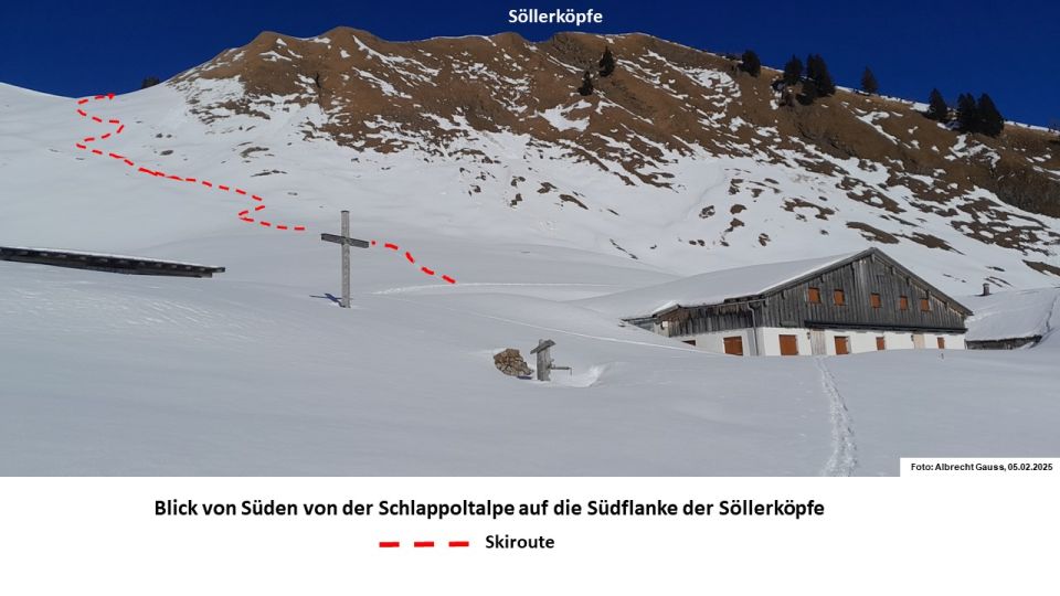 Von Oberstdorf-Faistenoy (Fellhornbahntalstation) über die Schlappoltalpe zum Söllerkopf (W-Grat) und zum Schlappoltkopf (NNO-Kamm)L1100m17.02.2025