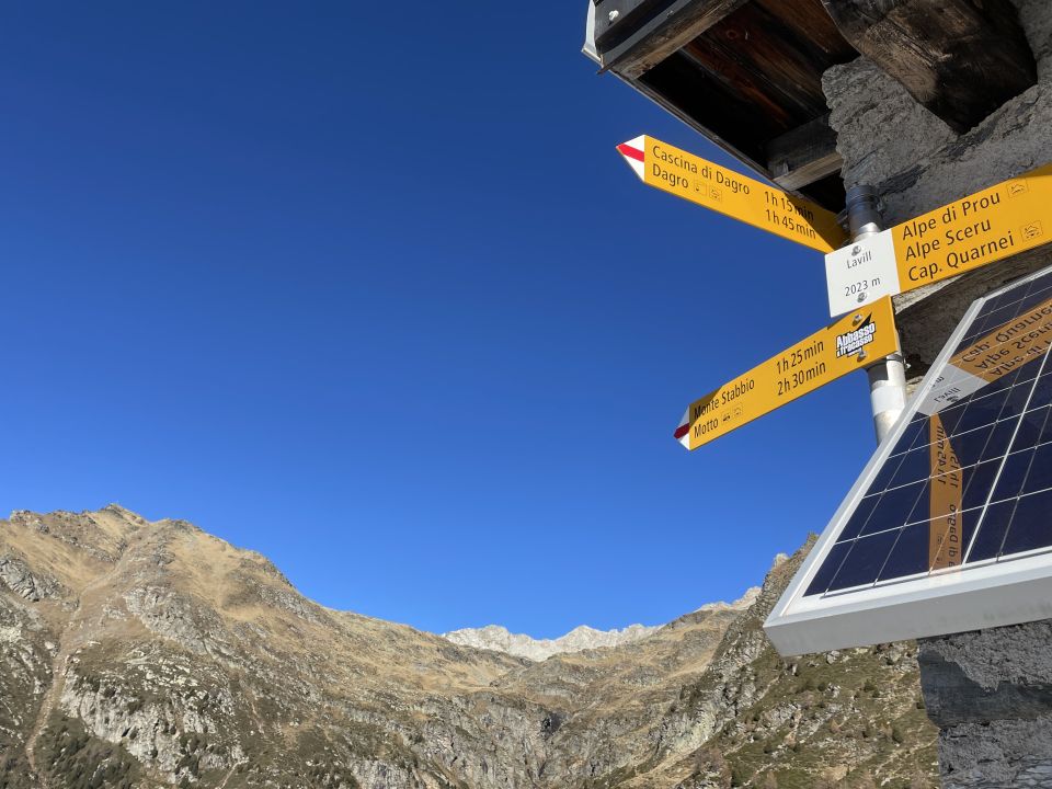 Die kleine Selbstversorgerhütte des Patriziato di Dongio und der Associazione Amici del Simano wurde im Jahr 2019 eröffnet und bietet seitdem 10 ÜN-Plätze. Links von der Tür gibt es in einer Hausnische ein kleines Kästchen mit vierstelligem Zahlenschloß, in dem der Türschlüssel steckt. Den Code für das Schloss muss man erfragen unter Tel. 078 809 2361. Vom modernen, im Jahr 2023 errichteten Kreuz neben dem Fahnenmast auf der natürlichen Terrasse hat man Tiefblick in das breite Bachtal des Brenno bishin nach Biasca. Kartenmaterial: