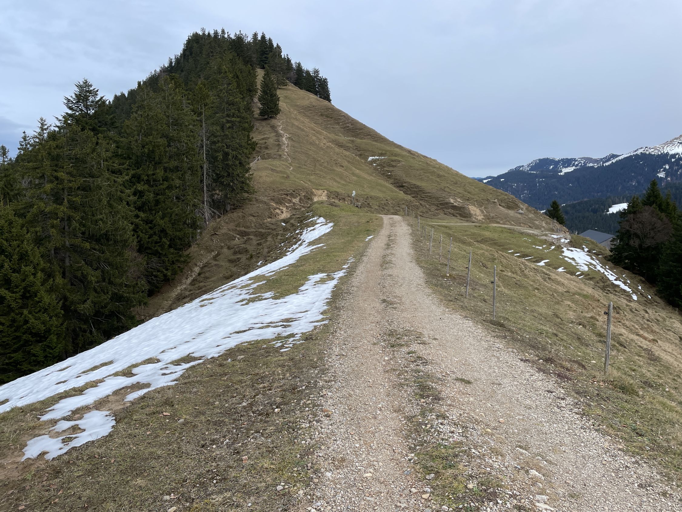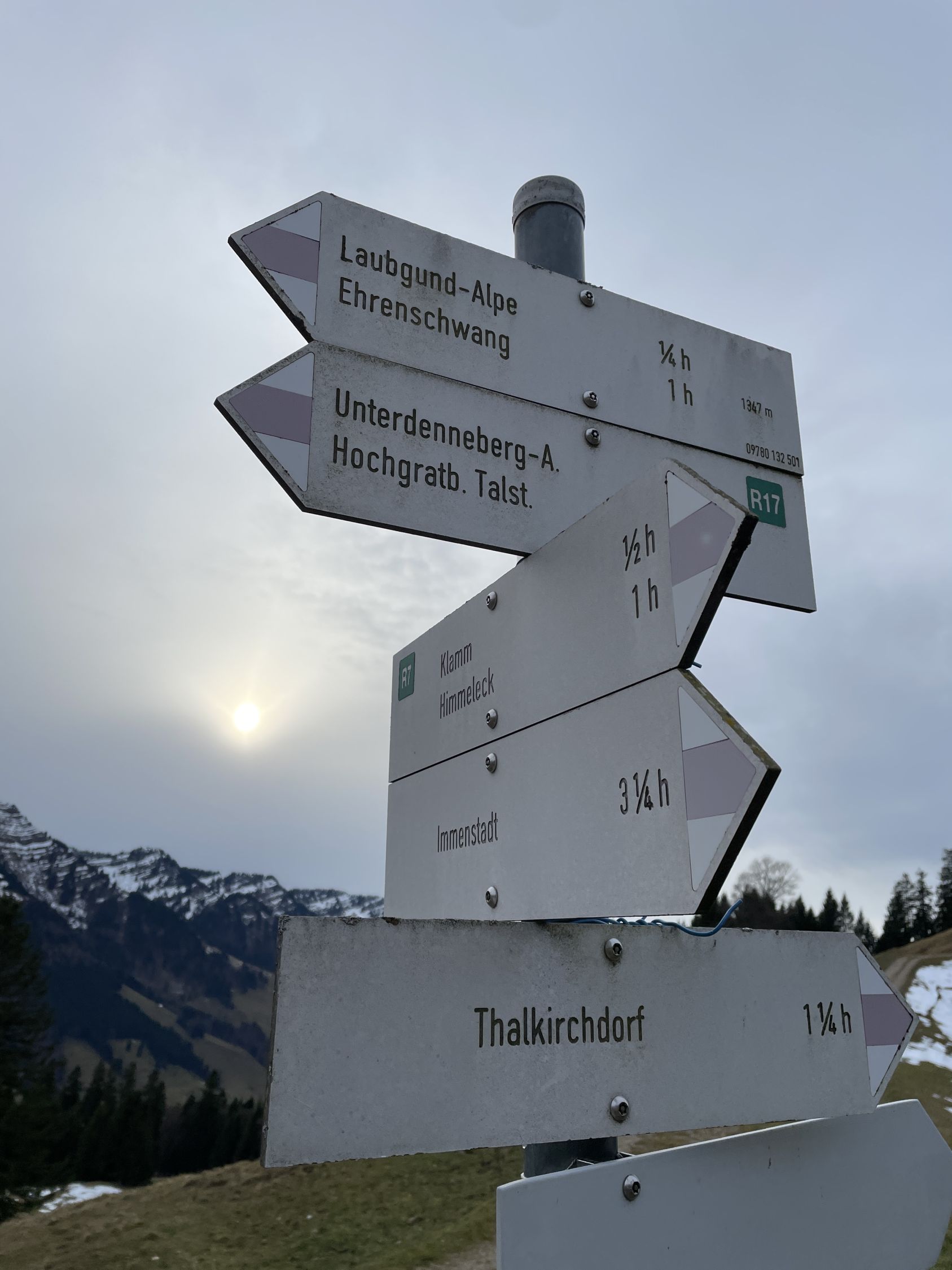 Thalkirchdorf – Ww. 787 m – Schwandalpe – P 936 – Moos-Alpe – Konstanzer Kreuz – P 1057 – Obere Mittelberg-Alpe - P 1184 – Ww. 1415 m – Denneberg – Kreuzgipfel – P 1332 – Herreberg-Alpe – Ww. Klammalpe – P 1057 – Moosalpe – Schwandalpe - ThalkirchdorfT 2712m18.12.2025