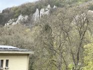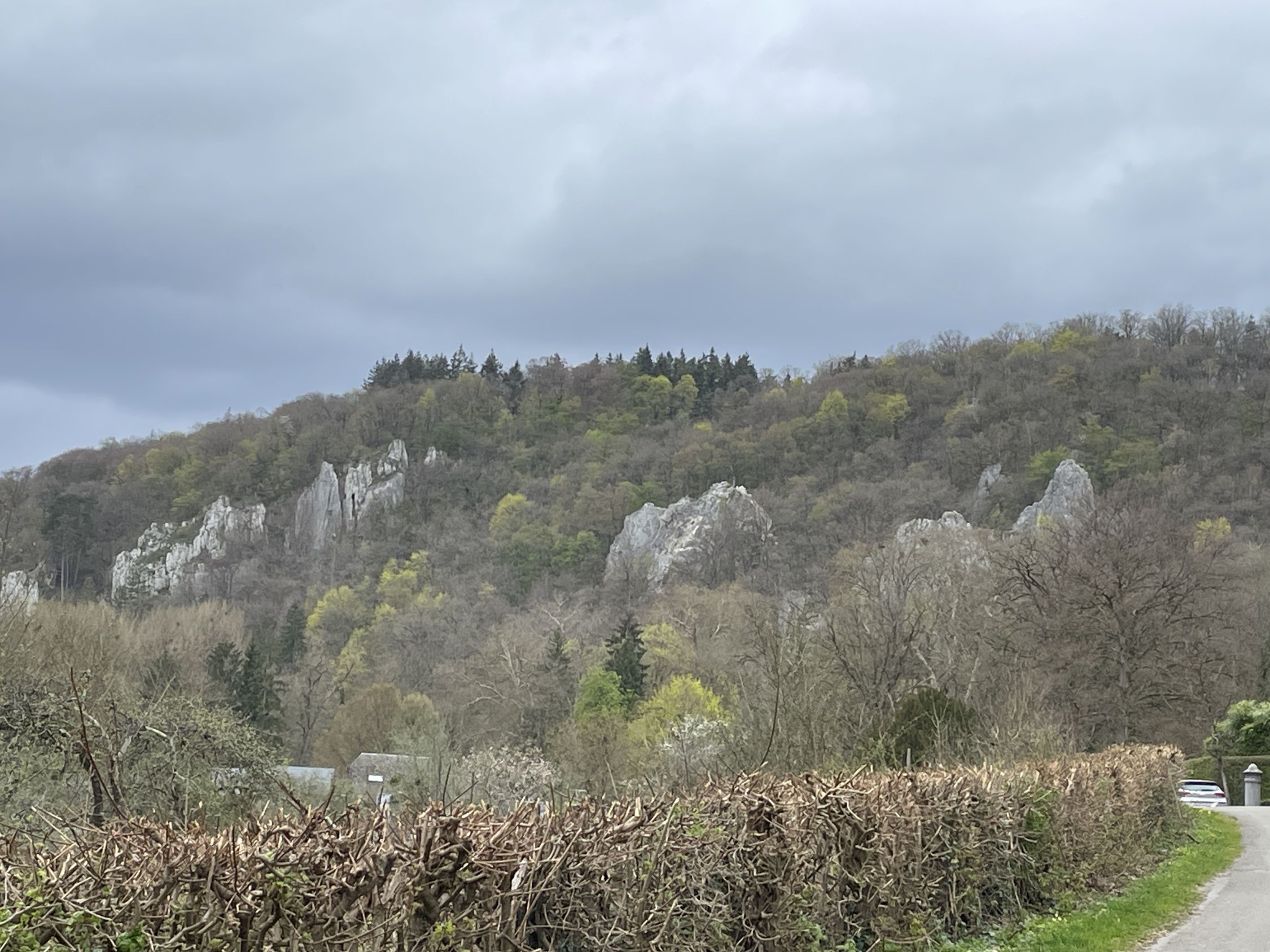 eine der 5 Kalkstein-Klippen an der Flußßschleife der la Lesse südlich von Dinant (Wallonien).