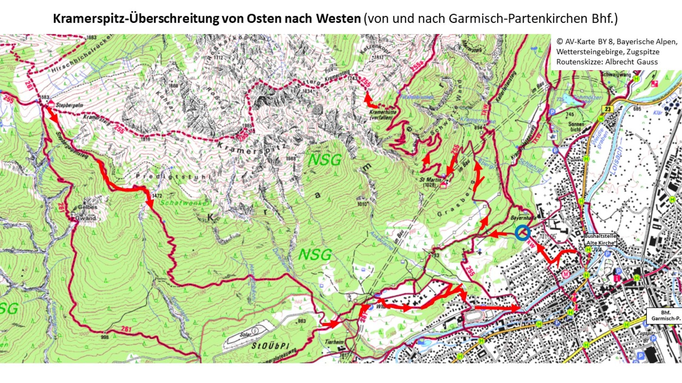 Überschreitung (Garmisch – Krieger-Gedächtniskapelle – Maurersteig – Kramersteig – Mittergern - Kramerspitz – Stepbergalm – Hirschbichel – Vorderer u. Hoher Ziegspitz – Rauhenstein – Grießbergalm - Ochsenhütte)T 41700m04.12.2025