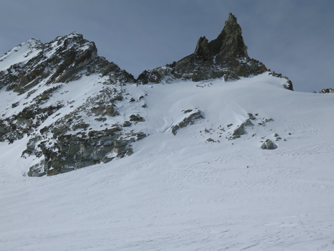 Weithin sichtbare markante Felsnadel hoch über Arolla. Sehr lohnende kurze Tour von der Cabane de Bertol.