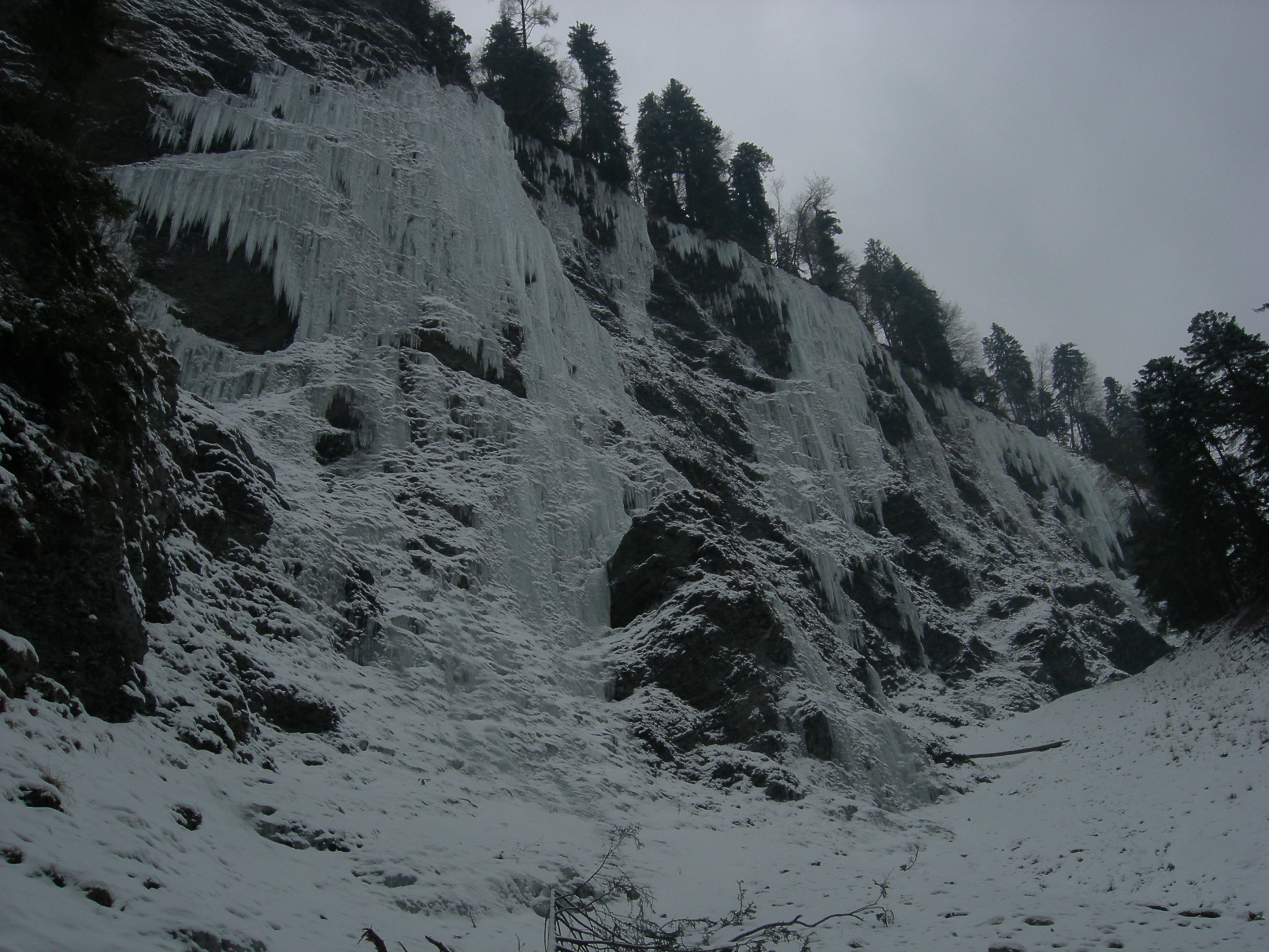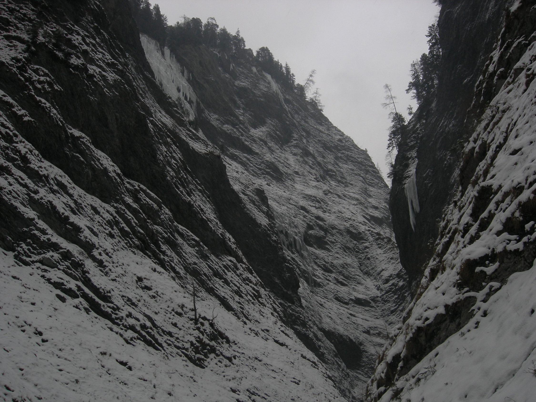 Eisklettergebiet nahe Grüsch (Landquart) mit kurzem Zustieg und drei interessanten Fällen. ACHTUNG: Stein- und Eisschlaggefahr im Tobel!!!