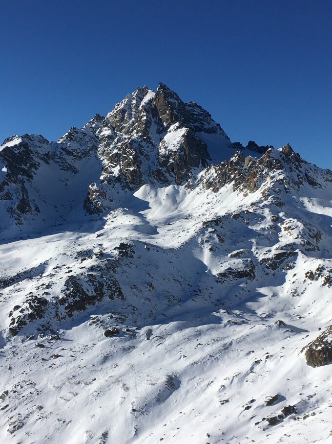 Östlichste Erhebung im hufeisenförmigen Keschgrat. Die Aguoglia d´Es-cha zählt zu den schönsten Kletterbergen des Albulagebietes (Manfred Hunziker)