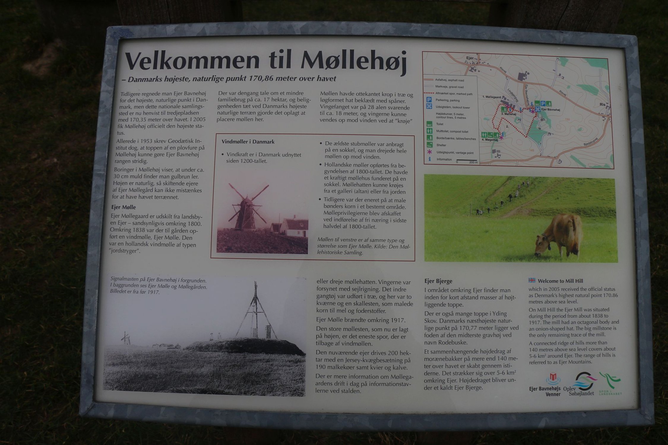 Schon 1917 wurden die aus Kalkstein bestehende Ejer Bjerge, zu denen der Yding Skovhøj, sowie Møllehøj, Møgelhøj und Ejer Bavnehøj gehören, zum Landschaftsschutzgebiet erklärt. Ab 1847, als erstmals Dänemark genauer vermessen wurde, galt zuerst der Ejer Bavnehøj als höchster Berg des Landes. 1941 wurde dann nach erneuter Vermessung klar, dass der Yding Skovhøj höher ist. Offiziell galt dann bis 2004 der Yding Skovhøj (172,54m), welcher 3km nördlich vom Møllehøj liegt, als höchste Erhebung vom dänischen Kernland. Die Gipfelkuppe des Yding Skovhøj ist jedoch ein Grabhügel aus der Bronzezeit, also ein menschliches Bauwerk. Ohne den Grabhügel beträgt seine durch Bohrungen exakt ermittelte Höhe 170,77m. Damit ist der Yding Skovhøj die zweithöchste natürliche Erhebung des dänischen Kernlandes ist.
