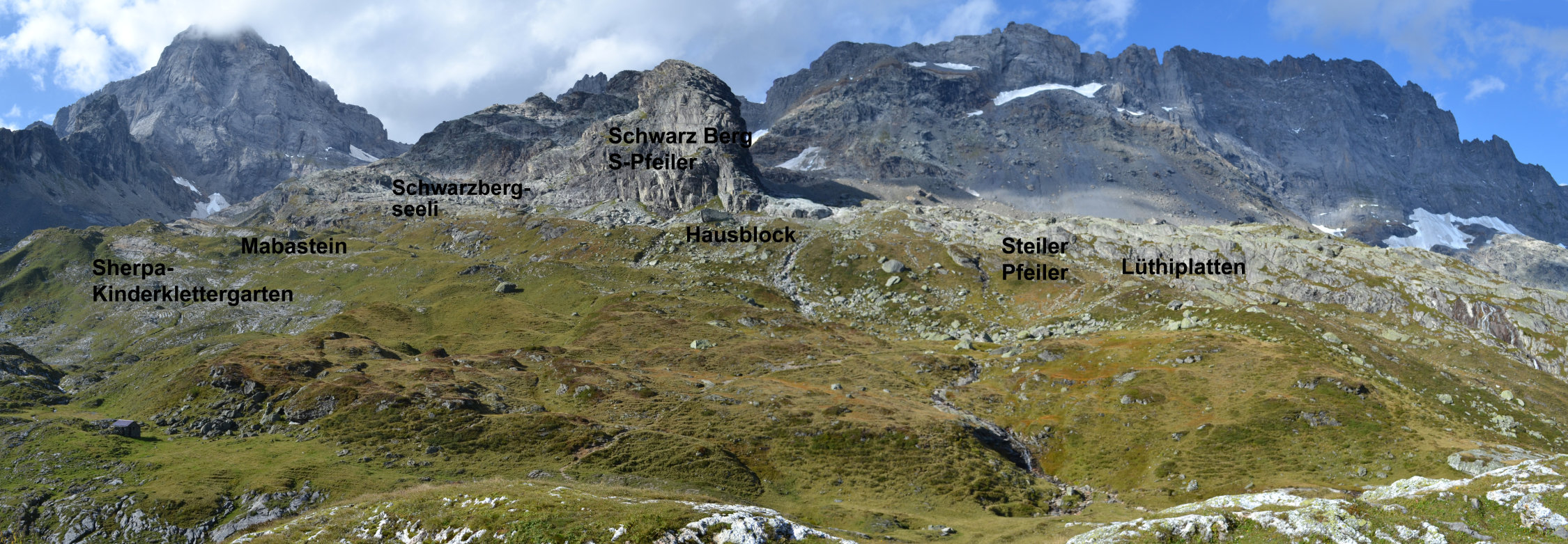 Rund um die Windgällenhütte verstreut liegen die kleinen Sektoren. Die Absicherung ist durchwegs sehr gut und die Routenlängen bescheiden: perfekte Bedingungen für Kinder, Anfänger und Ausbildung. Mehrseillängenrouten in griffigem Quarzporphyr findet man am Schwarzberg S-Pfeiler. Das Schwarzbergseeli ist zwar weit oben, lockt jedoch mit Badeplausch und einer Tyrolienne (Verankerungen eingerichtet). Das Klettermaterial kann in der Hütte gemietet werden (vorher anrufen und reservieren).