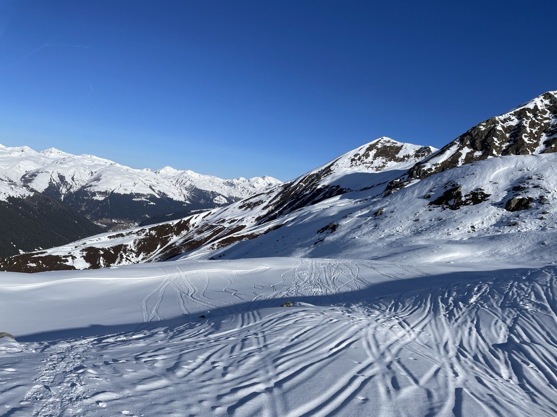 Prächtige Gipfelpyramide mit schöner Sicht in die Ducankette und rassigen Abfahrten ins Sertig.