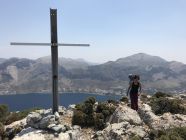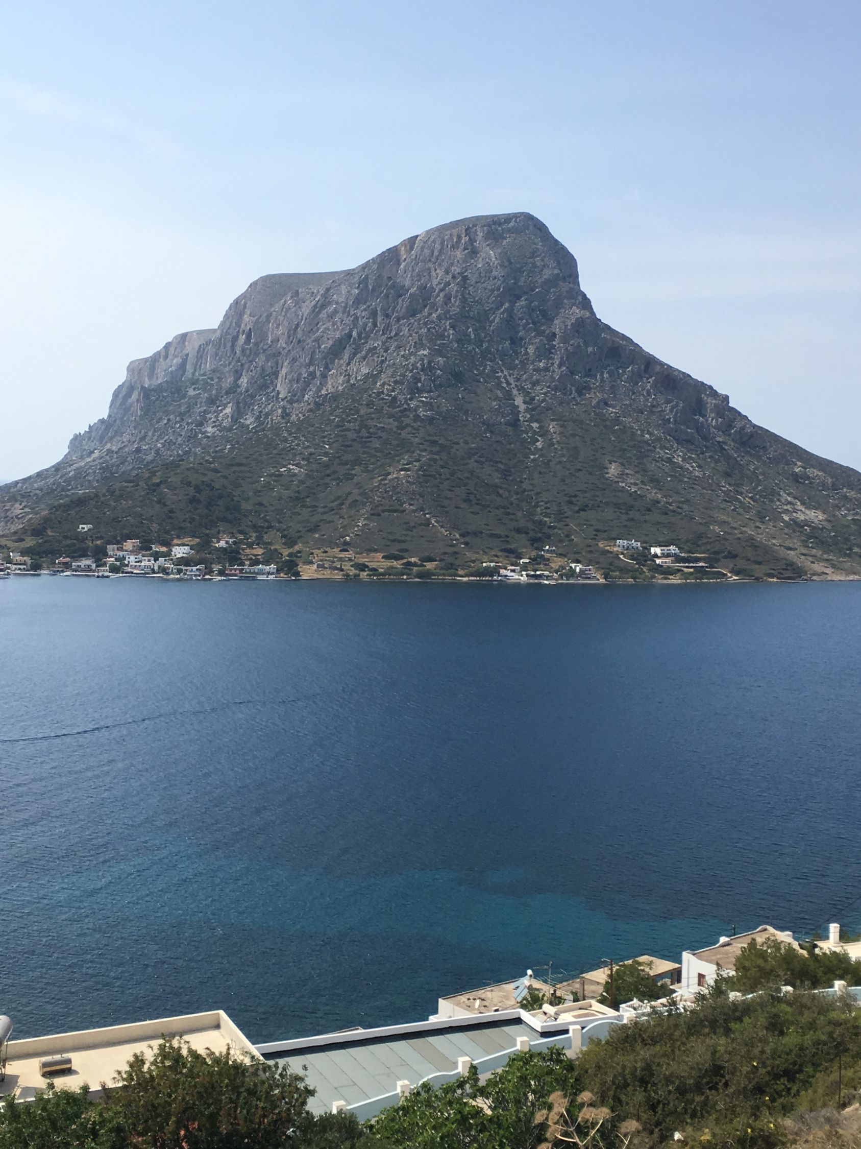 Das Bild von Telendos wird durch den Bergrücken Rachi (Ράχη) geprägt, der die Insel vom Aspros Kavos (Άσπρος Κάβος ‚Weißes Kap‘) im Westen bis Nahe der Ostküste durchzieht und in der Inselmitte 459 m erreicht. Im Südosten schließt sich eine etwa 900 m lange und fast 400 m breite, nach Süden ausgerichtete flache Halbinsel an, mit dem Kap Pnigmenos (Ακρωτήριο Πνιγμένος) als südlichstem Punkt der Insel. Der gleichnamige Ort der Insel liegt am Übergang zur Halbinsel auf der Ostseite. Gegenüber der Meeresstraße liegen auf Kalymnos die Orte Myrties und Masouri.