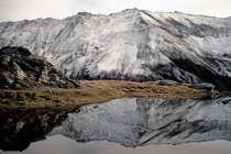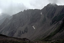 Die bis zu 400 m hohen Felsflanken sind steil und brüchig.