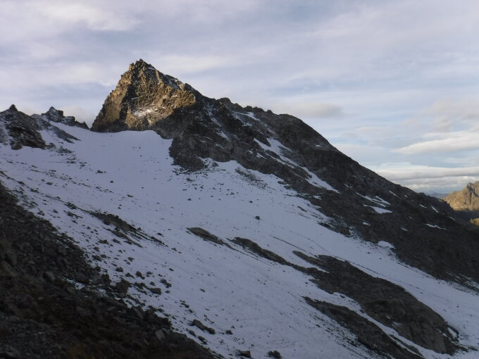 Doppelgipfliger Felsklotz, der auf der Nordseite bis in die Scharte zwischen den beiden Gipfeln vergletschert ist. Von der Saarbrückner Hütte wird der Gipfel häufig bestiegen.
