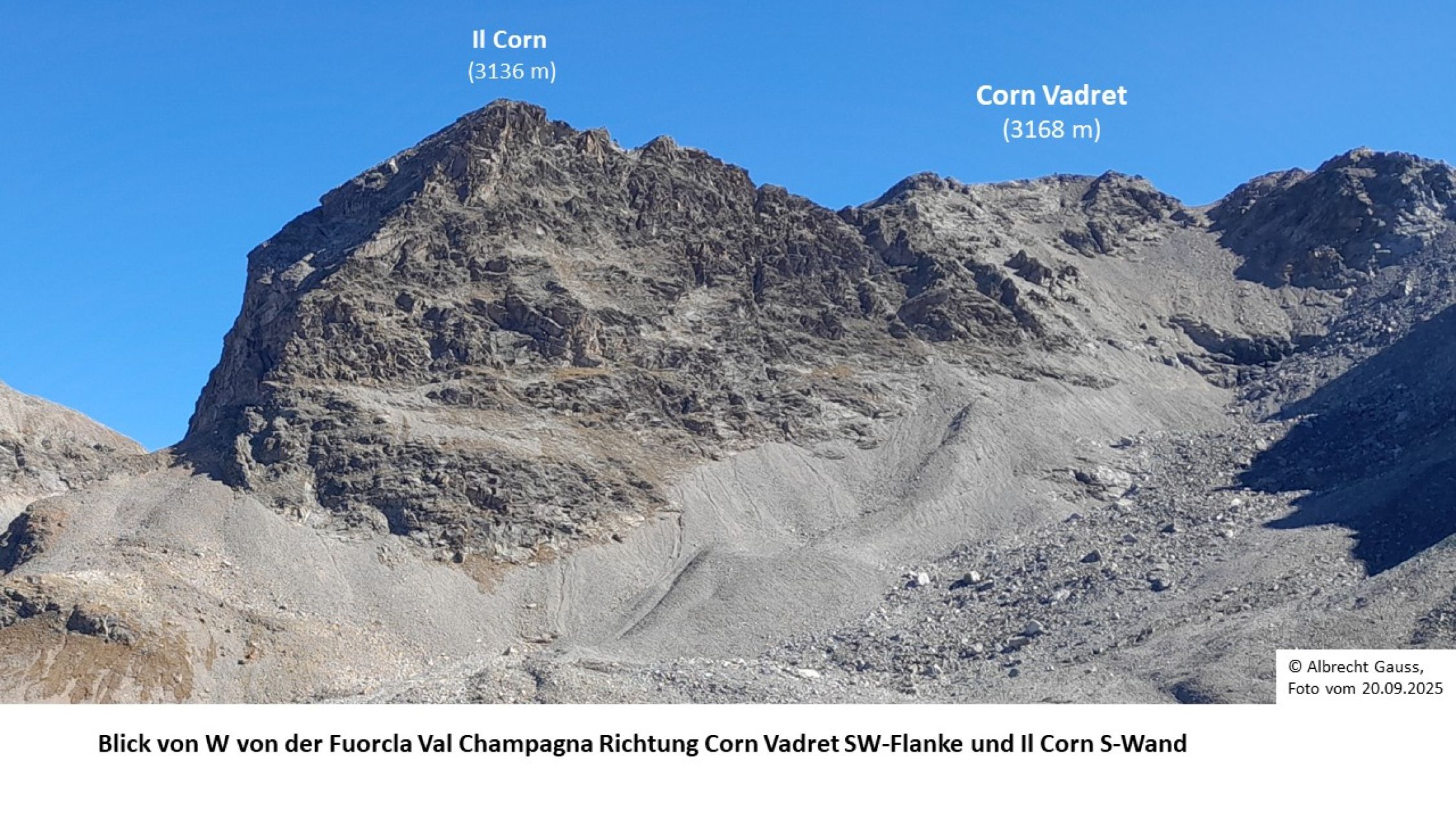 Es ist auch denkbar, den "Corn Vadret" (3168 m) als höchsten Punkt im OSO-Grat des Il Corn (P. 3136 m) und damit als Il Corn Haupt- oder Il Corn O-Gipfel zu bezeichnen.