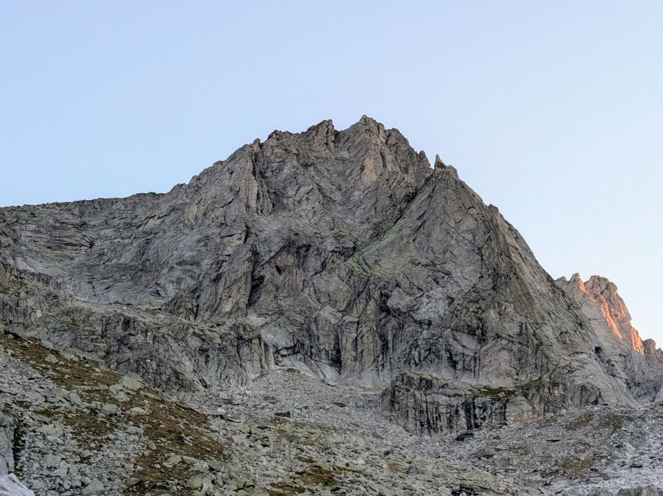 Grenzgipfel, auf der Albigna-Seite unbedeutende Graterhebung, auf der Südseite gewaltige Granitwände mit zahlreichen Kletterrouten. Ausgangspunkt Rif. Allievi, Lombardei.