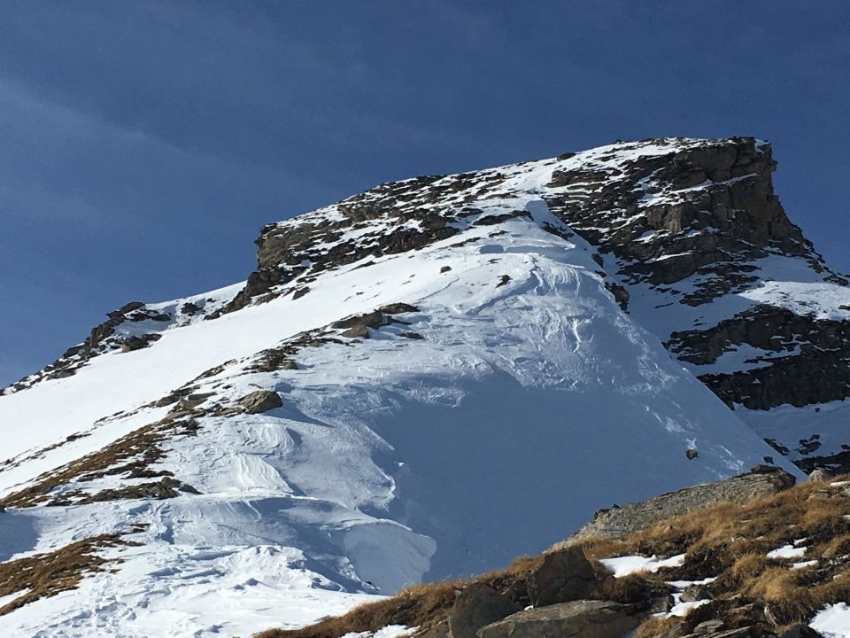 Spitziger Gipfel, der das Dorf Nufenen auf imposante Weise dominiert.