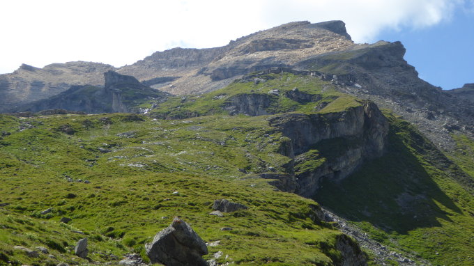 Pultförmiger Gipfel, der sich mit breiten Schuttflächen aus der Mulde von Anarosa erhebt und mit gewaltigen Steilwänden über 1300 Hm in den Hintergrund des Safientals abbricht. Der oberste Teil besteht aus auffallend gelbem Dolomit. Text SAC.
