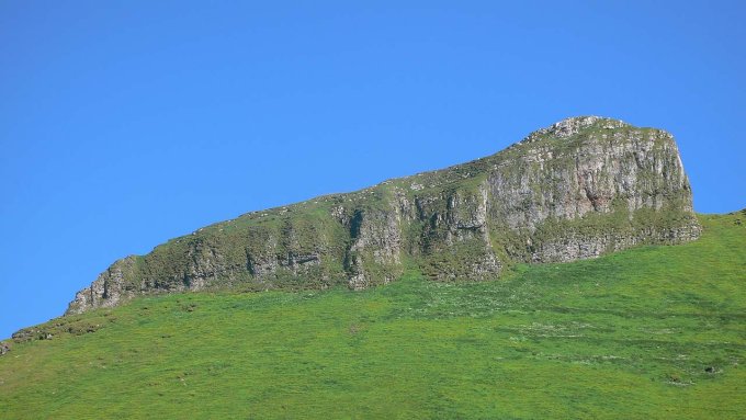Dem Vorder Leistchamm (P. 2098) im Norden vorgelagerter Felskamm aus brüchigem Kalk.
