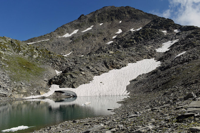 Unterhalb der Nordwestflanke ist der Glatscher da Gannaretsch eingelagert.