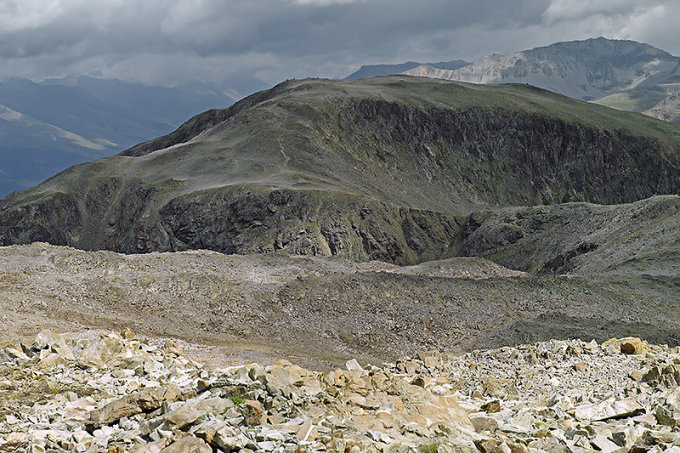 Runder Gipfel mit grossem Plateau. Mezdi ist abgeleitet vom romanischen mezdi Mittag, Mittagsspitze