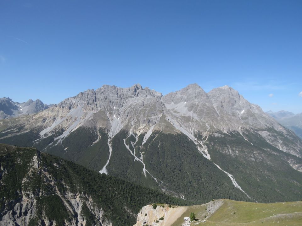 Liegt auf der Nationalparkgrenze. Schöner Doppelgipfel, von S-charl aus als markante Pyramide sichtbar.