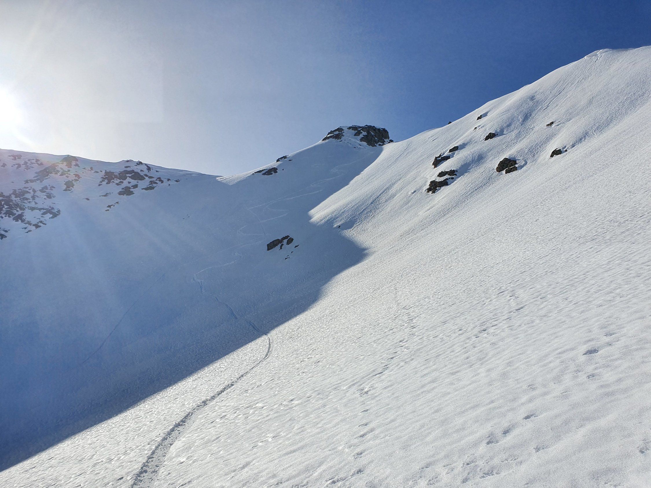 Nördlichste Gipfelerhebung im Felskamm des Piz Arpschella, welche nur selten besucht wird, obwohl sie eine schöne Skiabfahrt und einen imposanten Blick ins Val Susasca bietet.