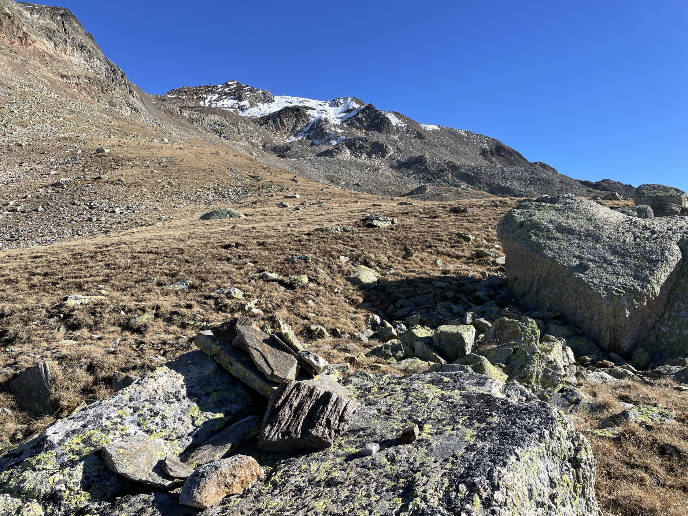 Überschreitung (La Forcola – P 2371 – Grenzstein Nr. 10 – P 2461 – Cima Li Rüzi - Grenzstein Nr. 13 – Val Ursera – Westflanke – Cima di Cardan – P 2978 - Südgrat – Piz Ursera – NW-Grat – Grenzstein Nr. 14 – P 2461 – P 2371 – La Forcola)T 4750m12.11.2024