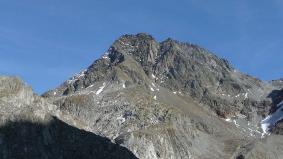 Imposanter Gipfel im Norden des Greinapasses mit schöner Nah- und Fernsicht.