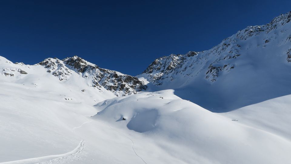 Schöner, felsiger Doppelgipfel, der aus dem Chüealptal ziemlich anspruchsvoll, aber bis zuoberst mit Ski begangen werden kann.