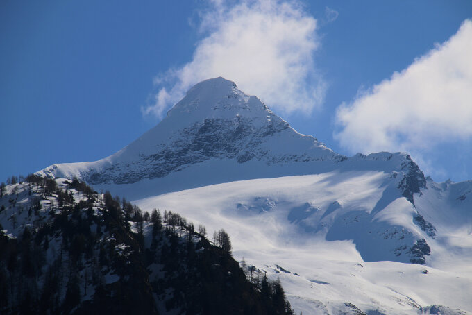 Das 3193,6m Bortelhorn (Italienisch: Punta del Rebbio) in den Lepontinischen Alpen ist ein Grenzgipfel zwischen der Schweiz (Kanton Wallis) und Italien (Regione Piemonte). Der Gipfel in Form einer auffälligen Pyramide ist ein sehr schöner Aussichtsberg im Simplongebiet hoch über Brig welcher 1869 nachweislich erstmals bestiegen wurde. Seine Schartenhöhe beträgt 430m zum 3,2km entfernten Ritterpass / Passo di Boccareccio (2764m) wo sich in weiteren 1,2lm das höhere Helsenhorn (3272,1m) anschliesst. Der nächsthöhere Berg vom Bortelhorn ist das Wasenhorn / Punta Terrarossa (3245,8m) 4,2km im Südwesten. Vom Gipfel gehen vier Grate aus: Südwest-, Nordwest- und Nordostgrat sowie der Südgrat der östlich des Gipfels sich mit dem Nordostgrat vereinigt. Unter den Flanken liegen vier Gletscher: Steinugletscher unter der Nordwand, Ghiacciaio di Mottiscia im Osten am Südfoss des Nordostgrates, Ghiacciaio del Rebbio unter der Süd- und der Bortelgletscher unter Westwand. Von den letzten beiden genannten Gletschern sind nur noch Eisreste vorhanden. Auf 2464m im Südwesten befindet sich zudem der künstliche Kopfspeichersee (Bortelseewji) des Kraftwerks Bortel. Stützpunkte sind die Bortelhütten (2107m) im Westen und die Rifugio Città di Arona (1769m) auf der Alpe Veglia im Osten. Die beiden Normalrouten sind der Südwestgrat (L-WS-/T4-5; Fels I) von der Schweizer Seite sowie der Südgrat (WS-/T5; Fels I-II) von Italien her. Die Tour von der Schweizer Seite wird auch im Winter mit Ski (ZS) oder Schneeschuhen (WT4) begangen. Weitere, weniger begangene Routen sind Nordwestgrat (L), Nordostgrat (WS), Südflanke (mehrer Varianten; WS bis ZS) und die Nordwand (ZS; Fels bis IV). Die Tour von der Schweizer Seite über den Südwestgrat wird auch im Winter mit Ski (ZS) oder Schneeschuhen (WT4) begangen.