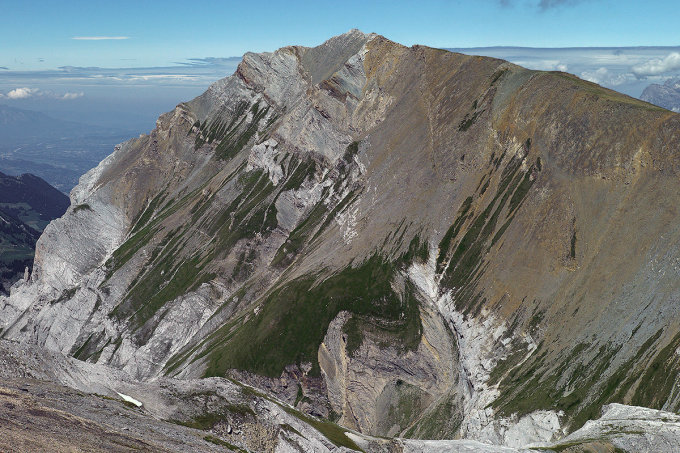 Die Nordwestflanke zum Taminatal hin ist steil, von Wänden durchsetzt und von Tobeln zerrissen.