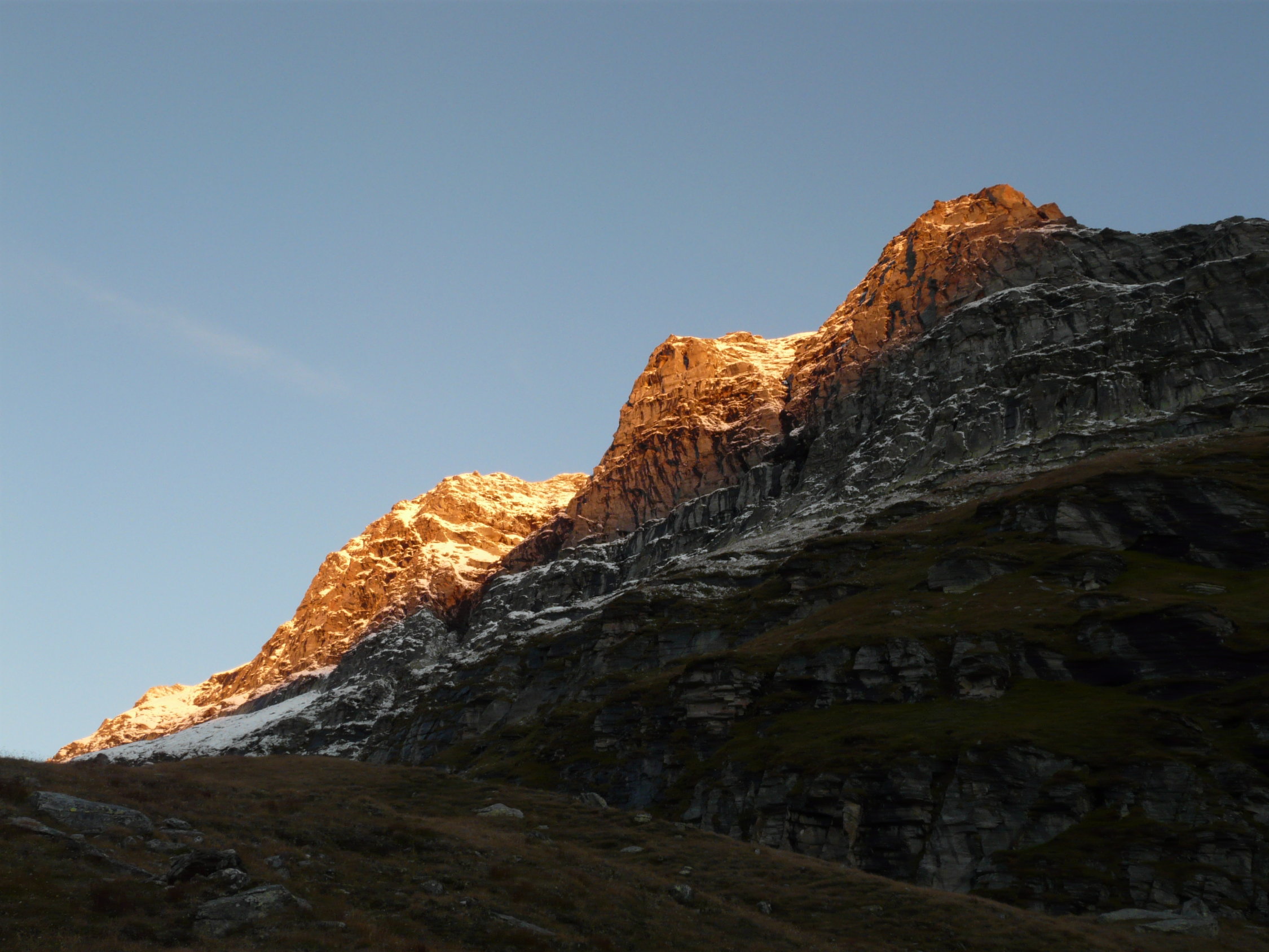 Ein Besuch lohnt auch aus geolgischer Sicht: Roter und gelber Augengneis wechselt mit schwarzem Tonschiefer und zuckerförmigem Dolomit. Noch zahlreicher als Geologen und Strahler sind aber die Steinböcke (und in ihrem Schlepptau die Jäger) an diesem Berg.