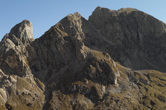 Der Südgipfel mit Kreuz weist eine Höhe von 2657 Meter auf, der Nordgipfel misst 2664 Meter.