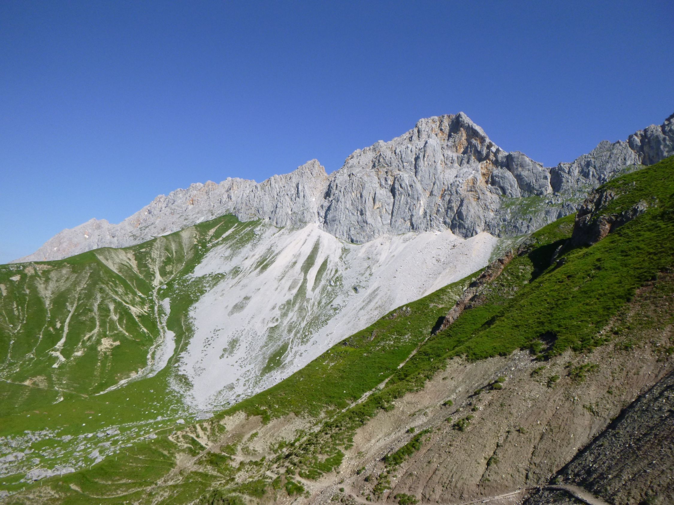 Einen etwas leichteren, mühsamen (Geröll), aber dennoch empfehlenswerten Anstieg bietet das Kar "Im Fall": Die Tour beginnt direkt an der Reintalangerhütte.