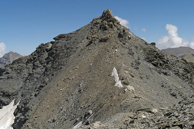 Der rückenartige, mehrheitlich aus Schutt bestehende Westgrat endet in den Weiden oberhalb des Lac du Mont-Cenis.