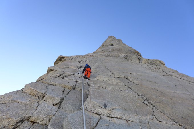 Freistehender Felszahn. Die Normalroute ist mit Fixseilen entschärft und die Aussicht vom Gipfel grandios!