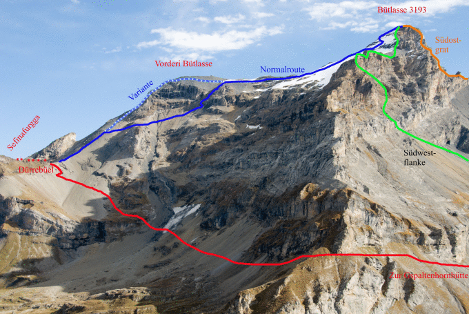 Als Skitour wird der Gipfel vorallem in der Frühlingszeit (April und Mai)gemacht. Die Route vom Bütlassesattel über den Südostgrat wird wegen dem extrem brüchigen Gestein selten mehr gemacht. Die relativ einfache Route durch die Südwestflanke wird zu unrecht nur selten begangen.