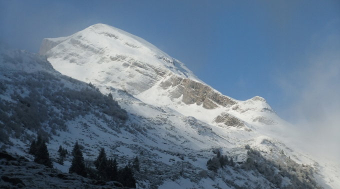 Die für die ganze Kette so typische Südwestflanke ist hier weniger felsig und wild als bei anderen Gipfeln, Grasflanken und Rinnen ermöglichen einen vergleichsweise einfachen Aufstieg.