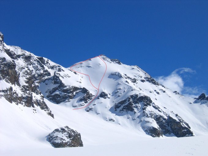 Von der Silvrettahütte aus über den Silvrettagletscher in Richtung P. 2864 am Fusse der West-Flanke steigen. Vor P. 2864 nach links in den Kessel in Richtung Rotfluelücke abbiegen. Den Kessel rechter Hand auf ca. 2960m verlassen und ein steiles Couloir (36-38° über 100Hm) hoch.