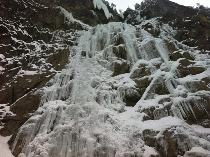 Von Kandersteg dem Schlittelweg folgend Richtung Oeschinensee. Bei der Brücke rechts hoch zum gut sichtbaren Eisfall.