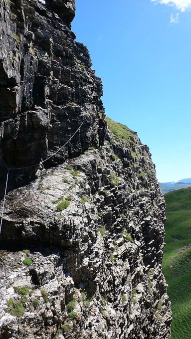 Vom Maschgenkamm auf dem Wanderweg zur Zigerfurgglen und weiter in Richtung Leist. Auf 2100 m.ü.M den Weg nach rechts verlassen und über die Wiese und Chuewägli zum Schuttcouloir am Südostfuss des Sächsmoors queren. Im Schuttcouloir auf guter aber steiler Wegspur aufsteigen bis kurz unter der Grathöhe nach rechts ein leicht ansteigendes Felsband den Durchgang zur Ostflanke ermöglicht. Über das Felsband (Bohrhaken und Normalhaken) und anschliessendem schmalem Weg zur Ostflanke queren. Durch die zuerst grasige Ostflanke auf guter Wegspur gerade hoch und zuletzt über steile und brüchige Schrofen auf den Grat (weitere Bohrhaken und Normalhaken). Auf schmalem Weg über den Grat zum höchsten Punkt. Gipfelbuch und Kreuz