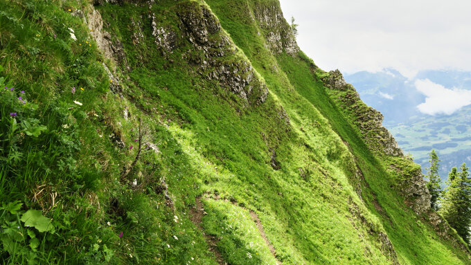 Der Weg vom Gipfel Richtung Nideri Pass erfordert Trittsicherheit.