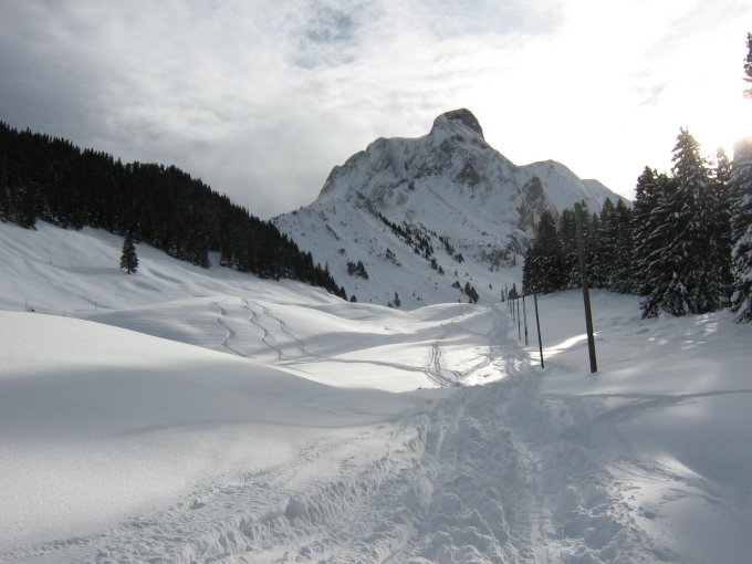 Vom Parkplatz bei der unteren Gantrischhütte zur Chumlihütte (ca. 1780m). Von dort weiter zum Morgetepass 1959m(ca. 50 Hm; 35°). Westwärts zum Südostgrat der Bürglen und über die Südflanke zum Gipfel.