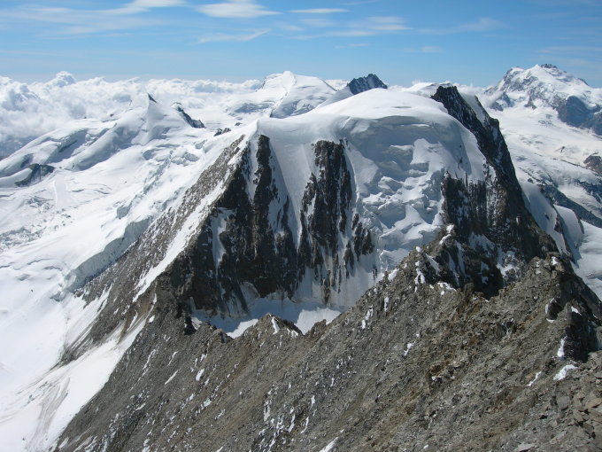 Der N-Grat dient vor allem als Zustieg zum Mischabeljochbiwak, jedoch ist er auch sonst eine gute Alternative zu den üblichen Routen.
