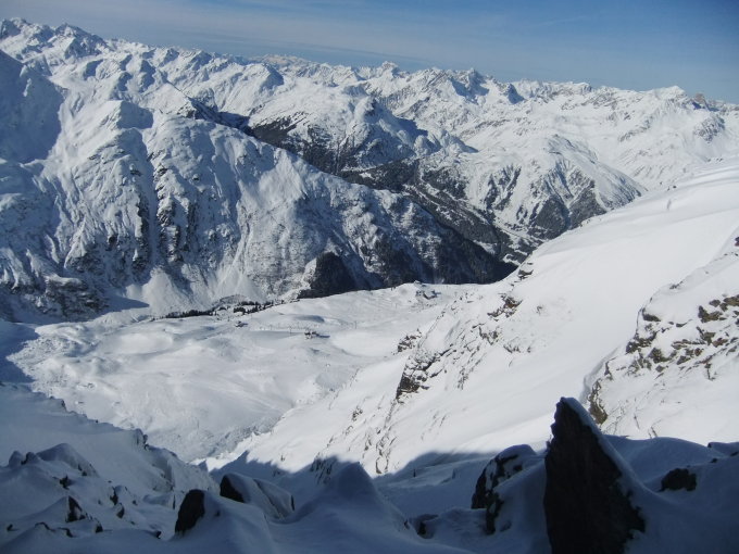Zurück Klettern. Dann kann man Ski oder SS bei der Bergstation deponieren.