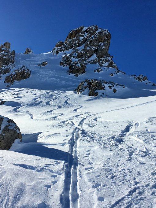 Bei guten Verhältnissen ab Sass Alv ostwärts steil hinunter in das Tälchen unterhalb Alp Munt und weiter Richtung Peidra Grossa